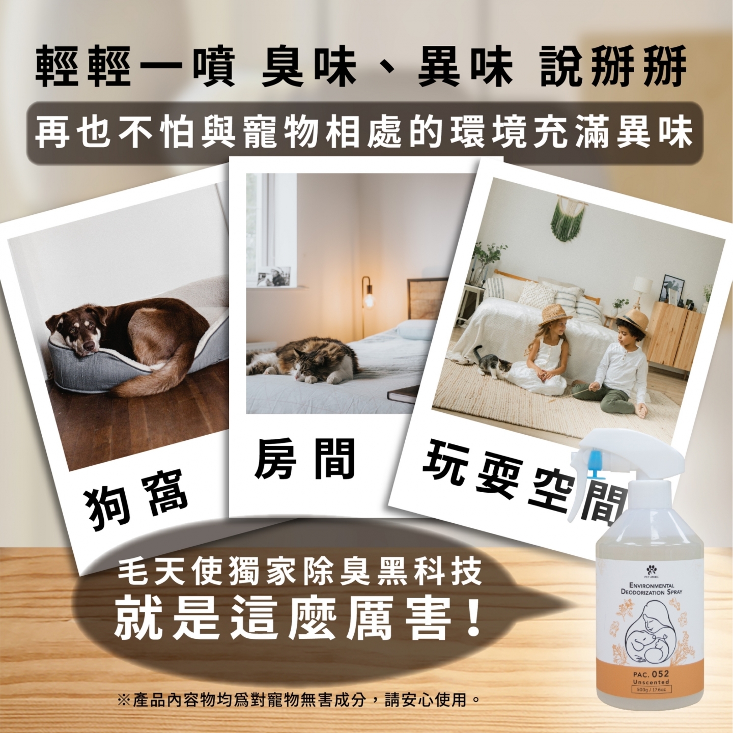 從根源上分解臭味,不是靠味道掩蓋臭味,除了抑菌功能外,針對貓尿狗尿以及體臭有長效除臭效果,幫您從源頭上解決養寵環境的各種臭味。