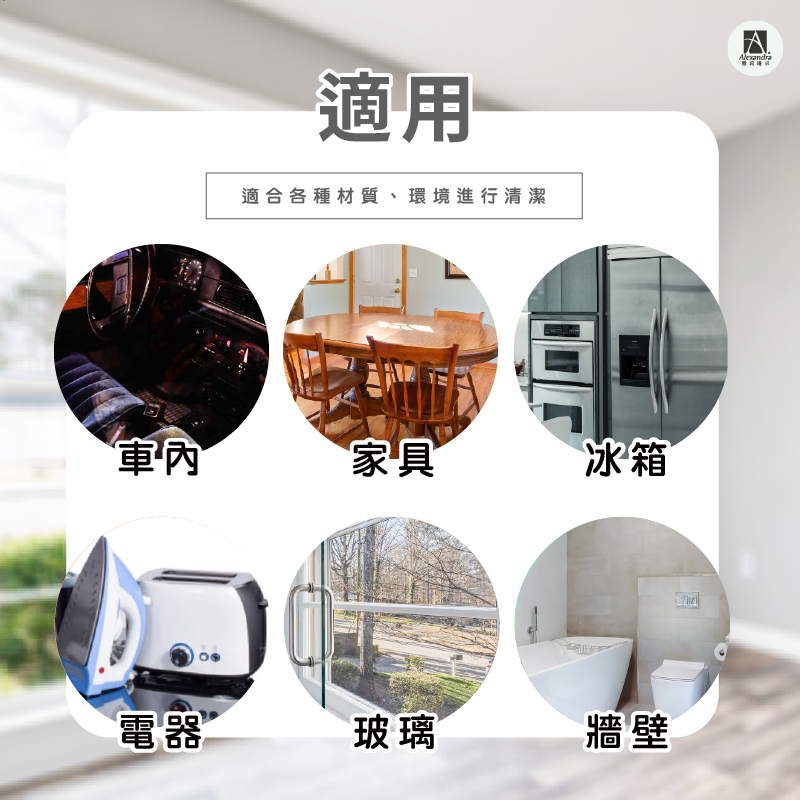 適用於各種居家清潔。 如:木質表面,塑膠表面,大理石表面,烤漆表面,桌椅,傢俱,冰箱,電器,玻璃,牆壁,餐桌表面,車內,皮質桌椅。、廚房、爐灶、抽油煙機、洗手台、陶磁、磁磚…有效洗淨各種髒汙、及難洗的油脂。