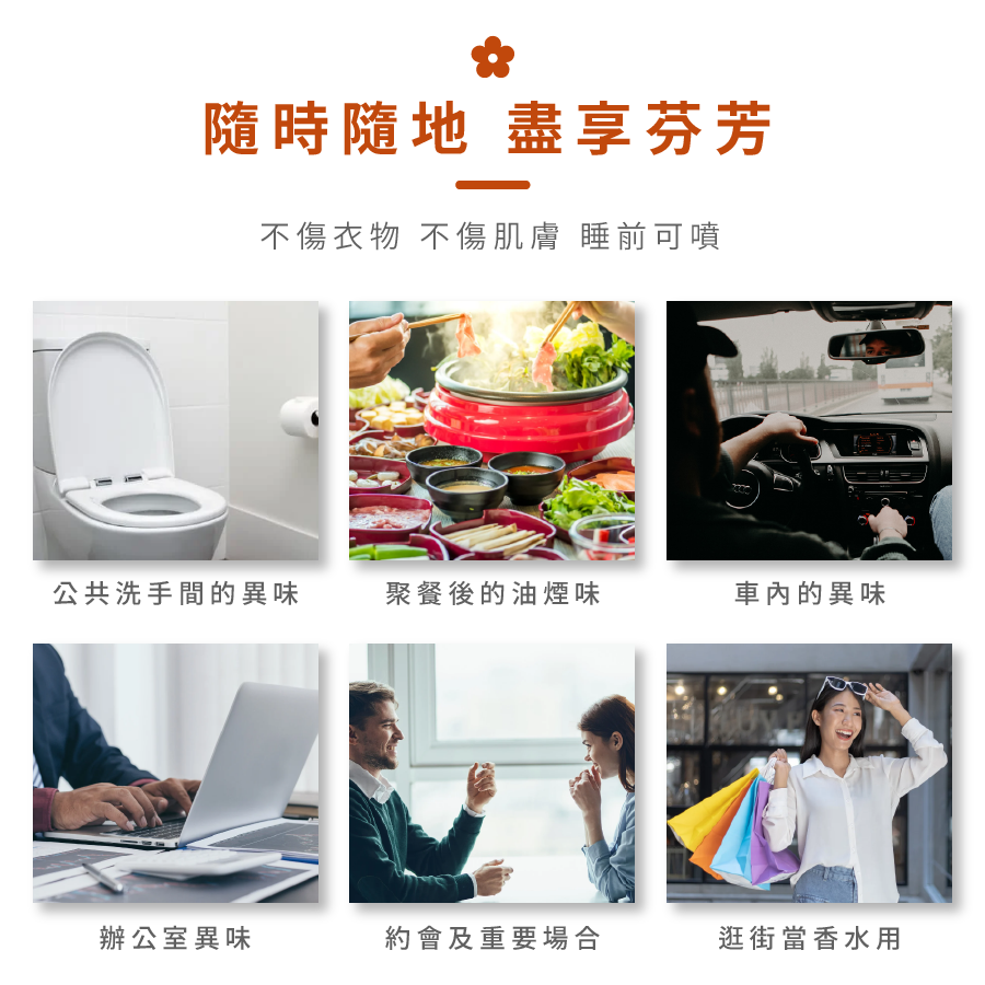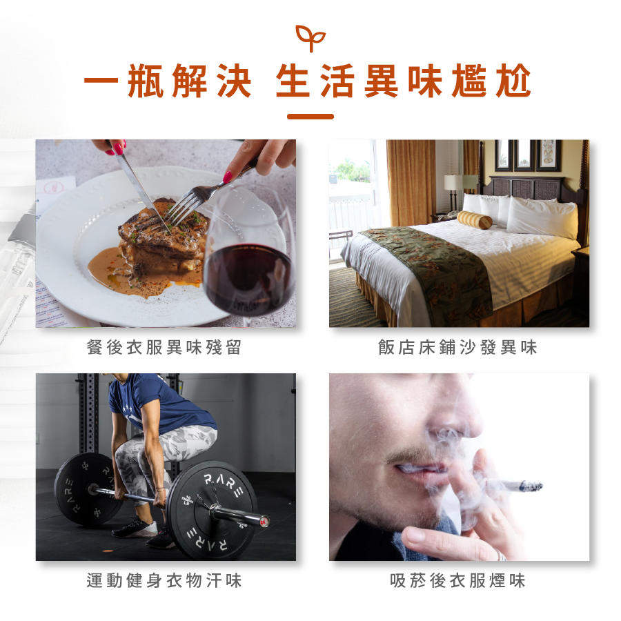 適用場景:針對殘留衣物上的食物氣味,油煙味,汗味,寵物環境等異味場所,許久未使用的衣物,被子,車內以及居家空間。